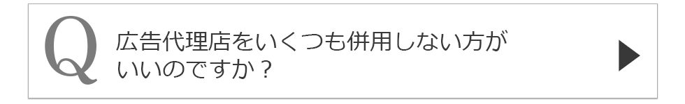 A. そんなことはありません。代理店を併用することでアカウントリスクであったり、成果が良い方の代理店を利用するというメリットがあります。